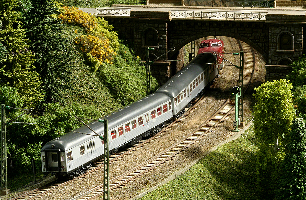 Im anschließenden 60-Grad-Bogenmodul sieht man auch, wer den Zug schiebt, eine 280 - ähem - von Arnold.
